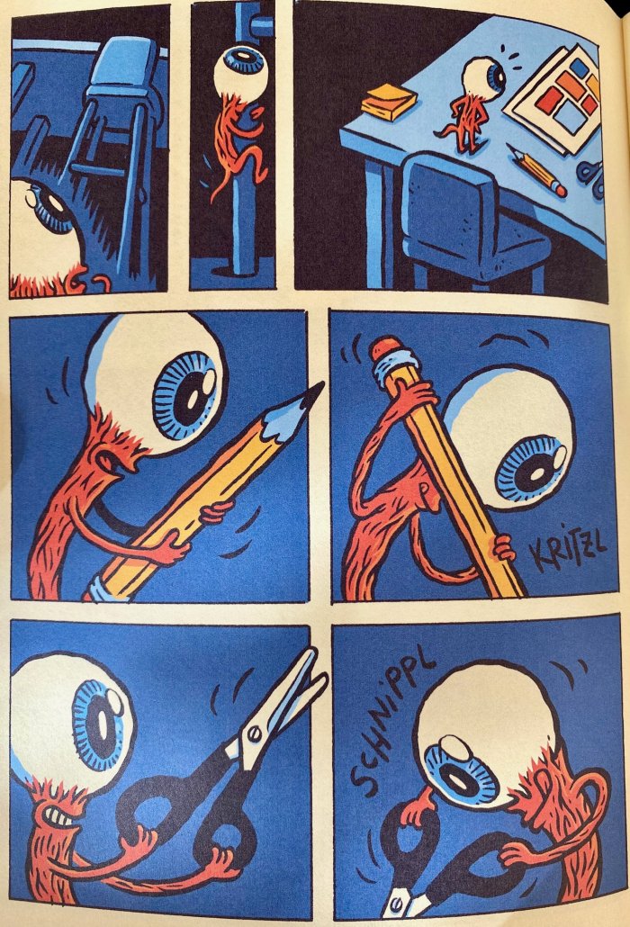 ‚The Lonely Organ #1‘ erzählt die Geschichte eines mutigen Augapfels, der nicht länger im Kopf seines menschlichen Wirtkörpers stecken möchte, da dieser seine Lebenszeit vor Bildschirmen und mit Comic-Lesen verschwendet!