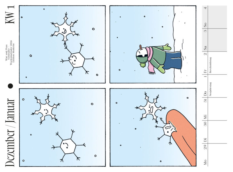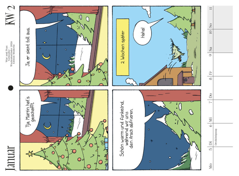 Die Strips von War and Peas zaubern dir ein Lächeln ins Gesicht und sind das beste Mittel, um jeden Montagmorgen gut in die Woche zu starten. Mit präzisen Beobachtungen, scharfsinnigen Pointen und Dad-Jokes zeigen uns War and Peas jede Woche entlarvende Wahrheiten.