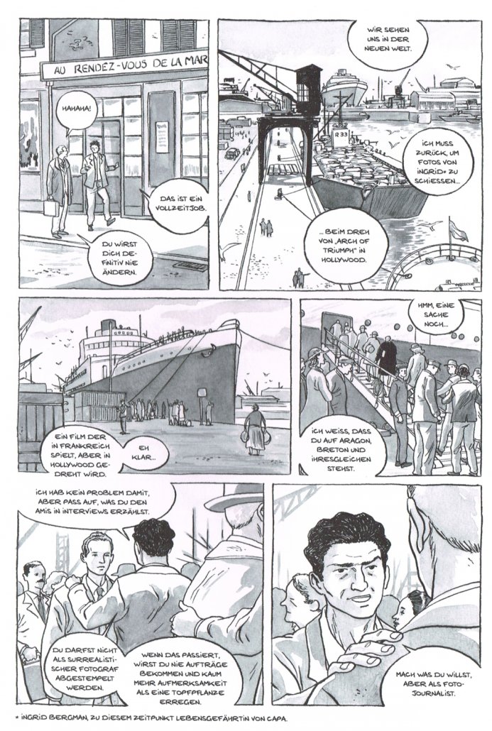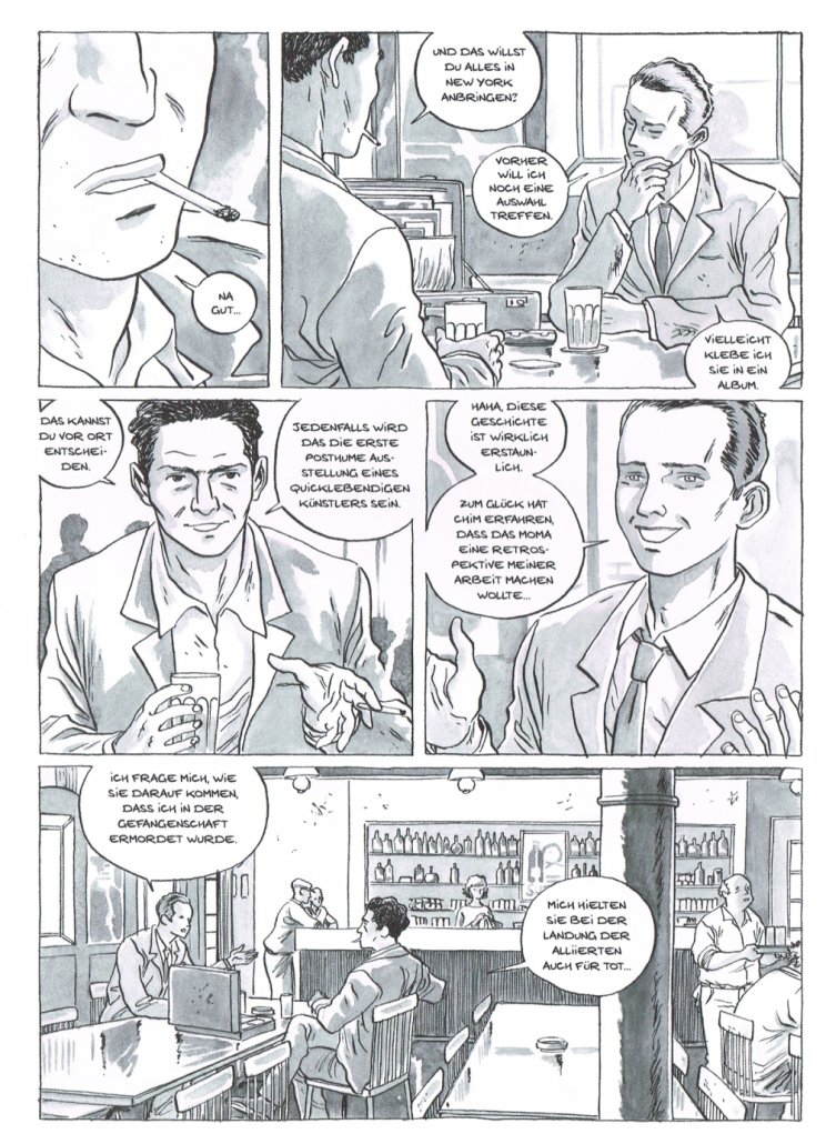 Cartier-Bresson, Deutschland 1945 erzählt die Geschichte dieses tief humanistischen und «freien Menschen», der Cartier-Bresson war. Die Graphic Novel dokumentiert seine Sicht des 2. Weltkriegs, der 40-seitige Anhang enthält eine Auswahl seiner berühmtesten Fotografien und ein historisches Dossier, welches von Thomas Tode, einem Kenner seines Oeuvres, unter der Schirmherrschaft der Cartier-Bresson-Stiftung verfasst wurde.