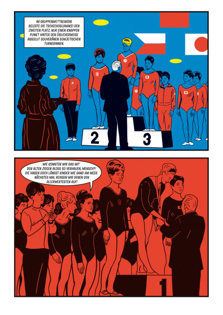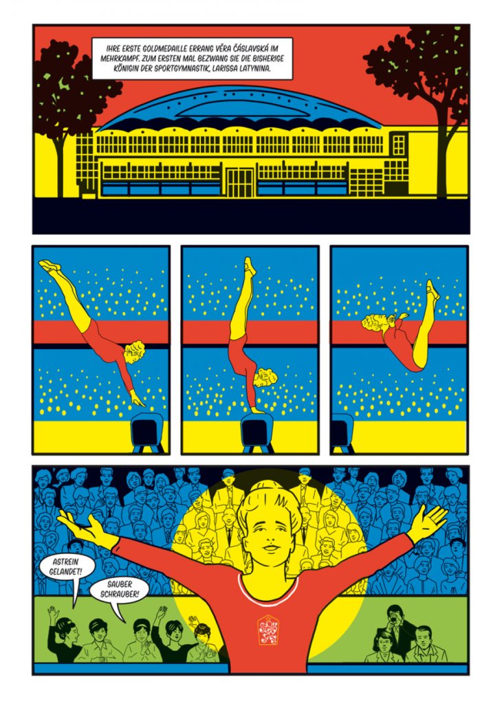 Die Graphic Novel Cáslavská erzählt von dem Leben der berühmten tschechischen Kunstturnerin Vera Cáslavská. Jan Novak (Text) und Jaromir 99 (Zeichnungen) haben ihr Leben auf 176 Seiten umgesetzt.