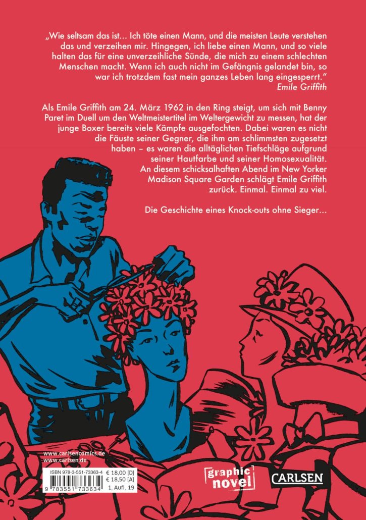 In seiner neuen Graphic Novel Knock Out! widmet sich Erfolgsautor Reinhard Kleist (Nick Cave. Mercy On Me) dem amerikanischen Boxweltmeister Emile Griffith, der 1962 traurige Berühmtheit erlangte, als er vor laufenden Fernsehkameras seinen Gegner derart hart traktierte, dass dieser ins Koma fiel und wenige Tage später verstarb. Vor dem tödlichen Kampf hatte er Griffith mit homophoben Verunglimpfungen zutiefst beleidigt…