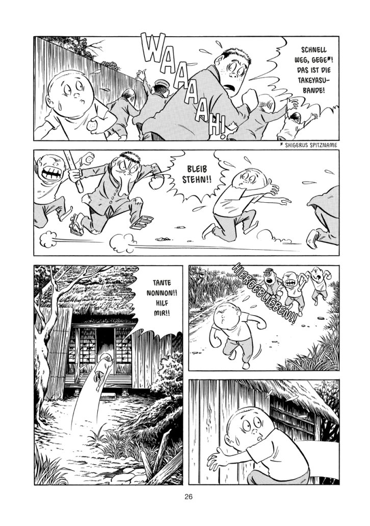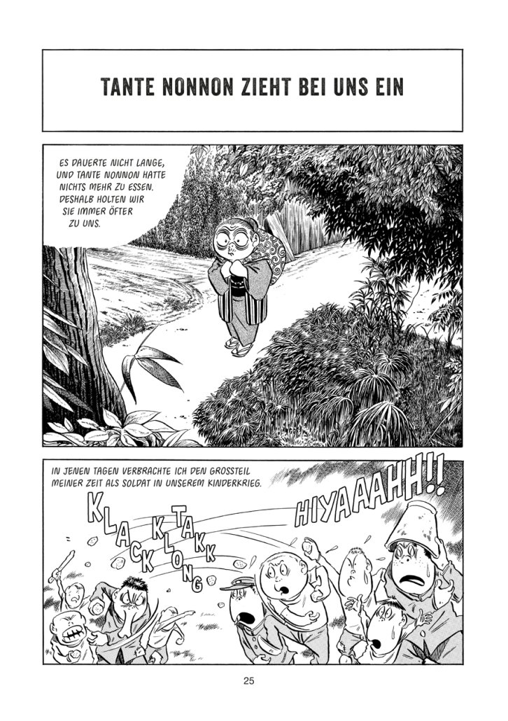 In ‚Tante NonNon‘ erzählt Shigeru Mizuki, wie er als Kind die Welt der Yôkai entdeckte: Seine Eltern hatten die Witwe eines buddhistischen Mönchs bei sich aufgenommen, die liebevoll Tante NonNon genannt wurde. Die alte Dame weckte das Interesse des kleinen Shigeru für die Yôkai, die ihn und sein Werk so nachhaltig beeinflussen sollten.