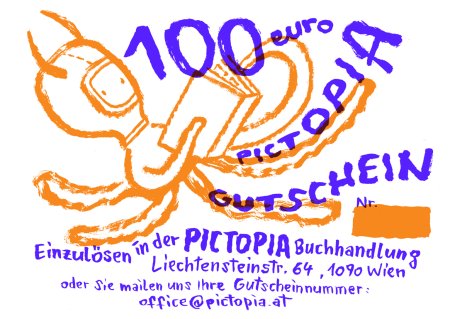 Der 100,00,- Euro PICTOPIA Gutschein nach einem Design von Nicolas Mahler und siebgedruckt von SOYBOT: Das perfekte Geschenk für Comicleser:innen und solche, die es werden wollen.