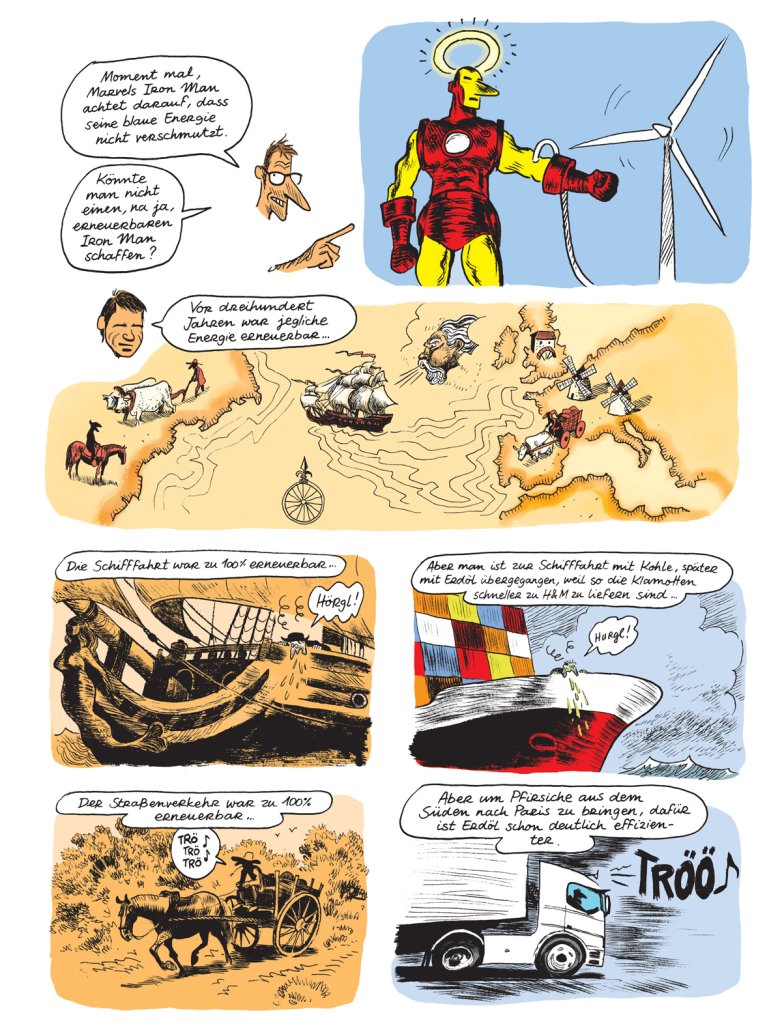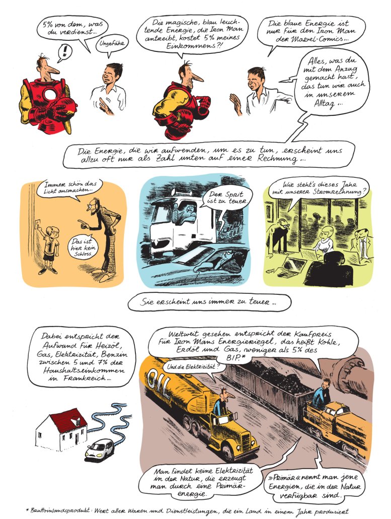 Jean-Marc Jancovici gelingt es, hochkomplexe Sachverhalte aus den verschiedensten Wissensgebieten bemerkenswert nachvollziehbar zu erläutern und in wirtschaftliche, ökologische und gesellschaftliche Zusammenhänge zu stellen. Christophe Blain findet seinerseits nicht nur präzise und originelle Bilder, die Ausführungen auf den Punkt zu bringen, sondern übernimmt als Co-Autor zudem die Rolle des Zweiflers und Kritikers – so entsteht ein lebendiges, lehrreiches Buch, dessen Thesen zur Energiewende teils kontrovers diskutiert werden können, das jedoch an keiner Stelle ideologisch argumentiert.